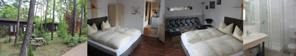 | Für 3 Personen sind diese Bungalows besonders gut geeignet, da sie neben dem Wohn-/Schlafzimmer mit den zwei Boxspring-Betten auch über ein separates Schlafzimmer mit einem Bett für eine dritte Person verfügen. Im Wohn-/Schlafzimmer kann die darin befindliche Klappcouch als zusätzliche Aufbettungsmöglichkeit genutzt werden. Diese Bungalows verfügen natürlich auch über Küche mit Inventar, Bad und Terrasse. |